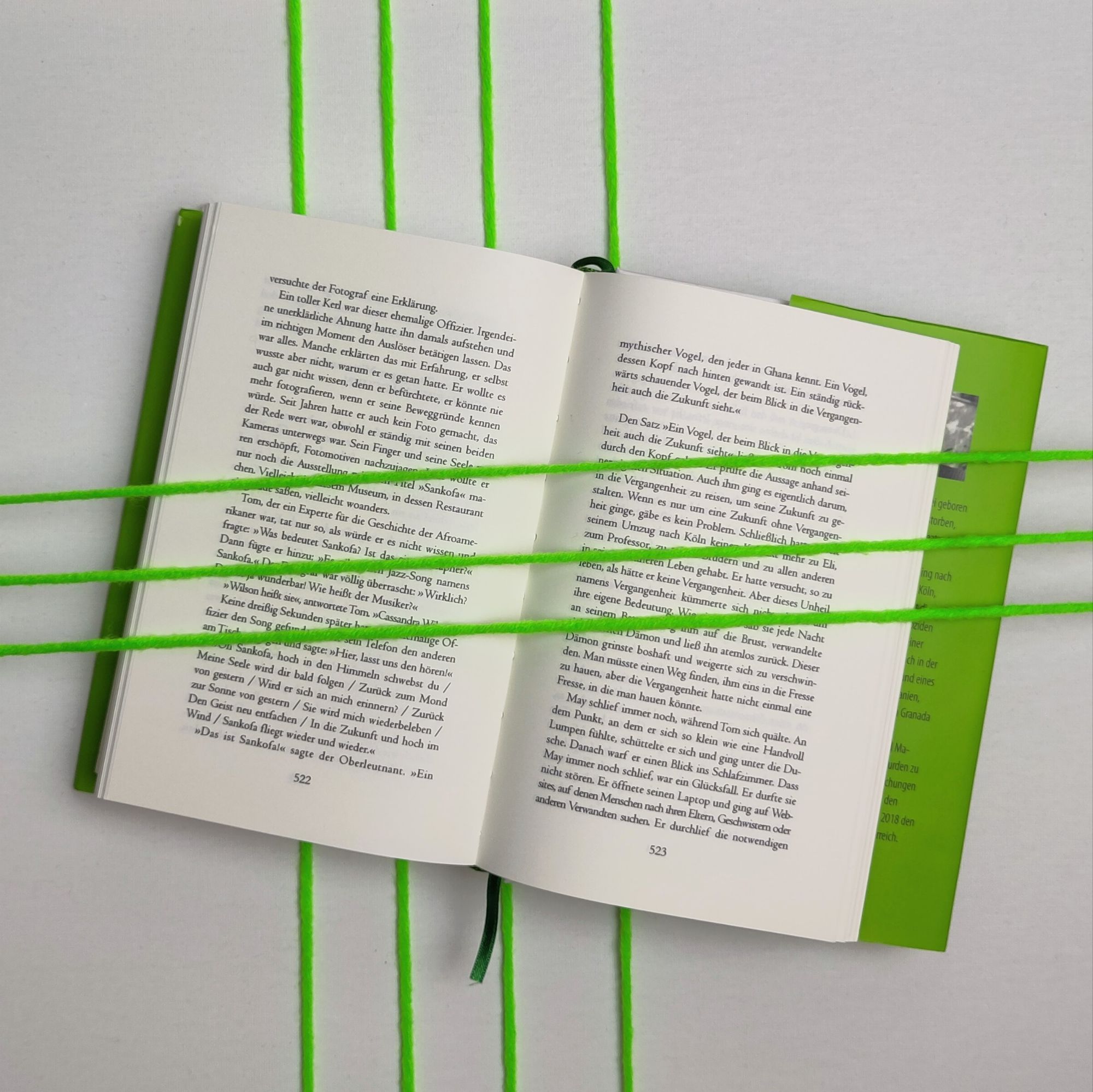 Für die Erzählung aber bleibt er der Oberleutnant und hat als einzige Person in dem an Personen nicht armen Roman keinen Namen. Er steht inmitten zahlreicher Verkettungen, die ihm selber gar nicht bewusst sind und die ihn oft auch kaum tangieren. Sankofa verbindet mindestens vier persönliche Geschichten zu einer großen Erzählung über Gewalt und Resilienz, in der Akhanlı einen weiten Bogen des Unrechts, der Gewalt und des Umgangs damit spannt. Der Romantitel bezeichnet ein Symbol, oft in Form eines Vogels, das vor allem in Ghana eine Rolle spielt – Sankofa nimmt aus der Vergangenheit, was in der Zukunft nützlich sein kann. Für die Figuren des Romans sind das sehr unterschiedliche Aspekte, die sich in fast nostalgischer Heimatverbundenheit, Vergebung oder auch grausamer Rache äußern können.