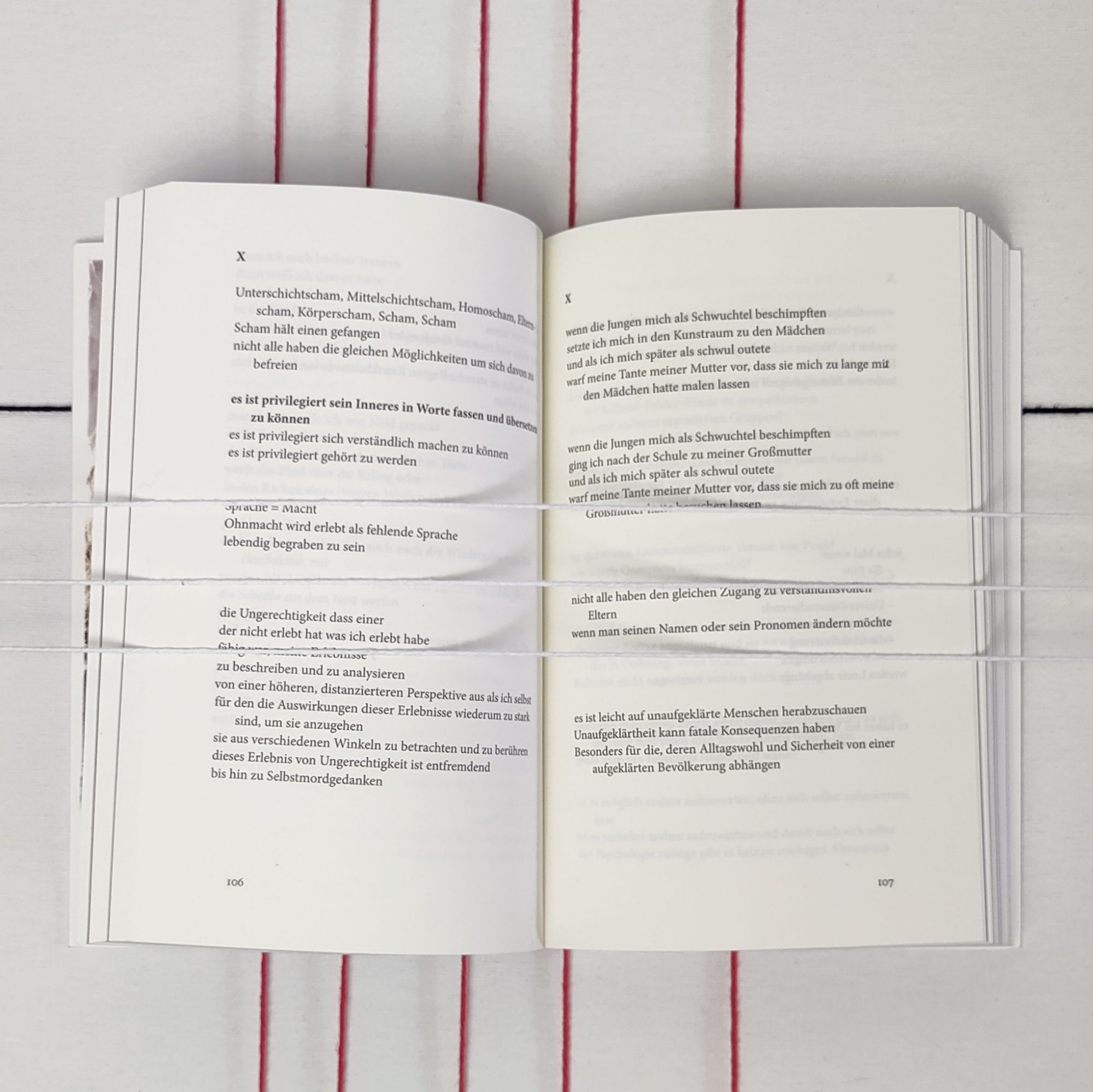 In seinem Manifest macht er seiner Wut Luft – aber auch seiner Hoffnung, dass eine andere Gesellschaft existieren kann. Sein Buch widmet er „Dem Klassenkampf“ und formuliert seine Forderungen in kurzen, lyrisch anmutenden und locker gesetzten Passagen, die thematisch sortiert sind, aber nicht aufeinander aufbauen. Er unterteilt den Text in Themen wie „Ich & Meine Mutti“ oder „Provinzschwule sind Gott“. Er macht keinen Hehl daraus, dass viele derer, die seine Texte lesen, auch zu denen gehören, die er kritisiert. Das aber formuliert er nicht als Vorwurf, sondern als sehr deutlichen Hinweis auf die Privilegien, die viele überhaupt nicht mehr als solche begreifen.